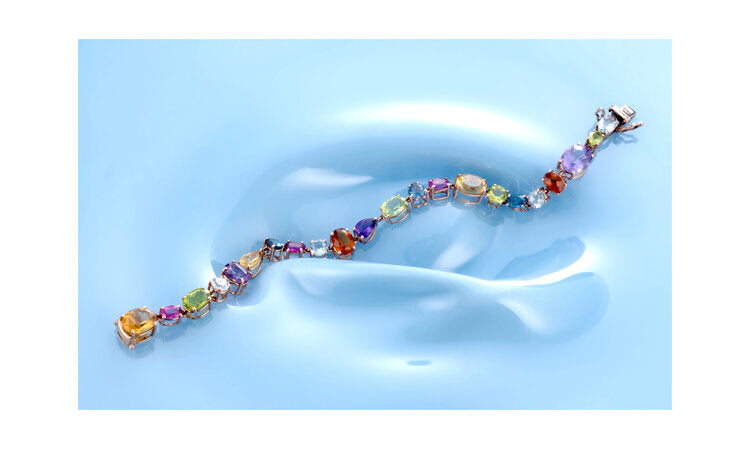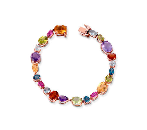 Eleva il tuo stile con il nostro affascinante bracciale arricchito da pietre colorate dal taglio fantasioso, in un design che ricorda la raffinatezza classica del bracciale tennis. Questo gioiello unico cattura l'attenzione con la sua combinazione di colori vibranti e tagli fantasiosi, creando un'armonia di forme e tonalità
